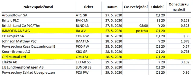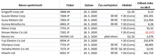 Poznámka: Odhady analytiků jsou aktuální k 22. 5. 2020.