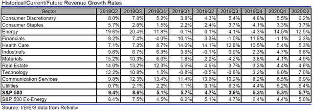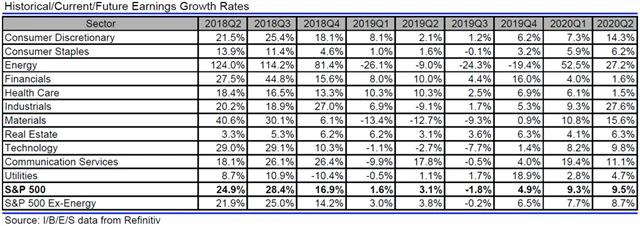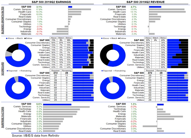 Jak se vyvíjejí odhady růstu či poklesu zisků a tržeb amerických firem za 2Q2019?