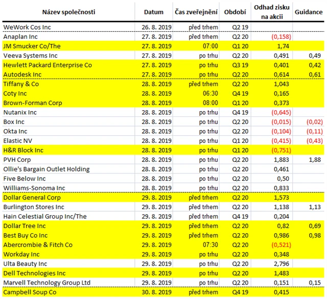 Očekávané výsledky světových firem v týdnu od 26. srpna (23. 8. 2019)