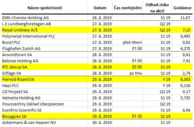 Poznámka: Odhady analytiků jsou aktuální k 23. 8. 2019.