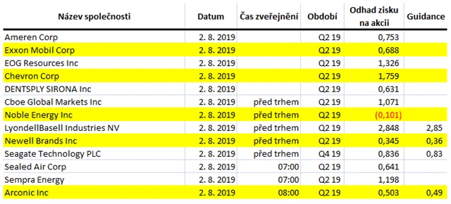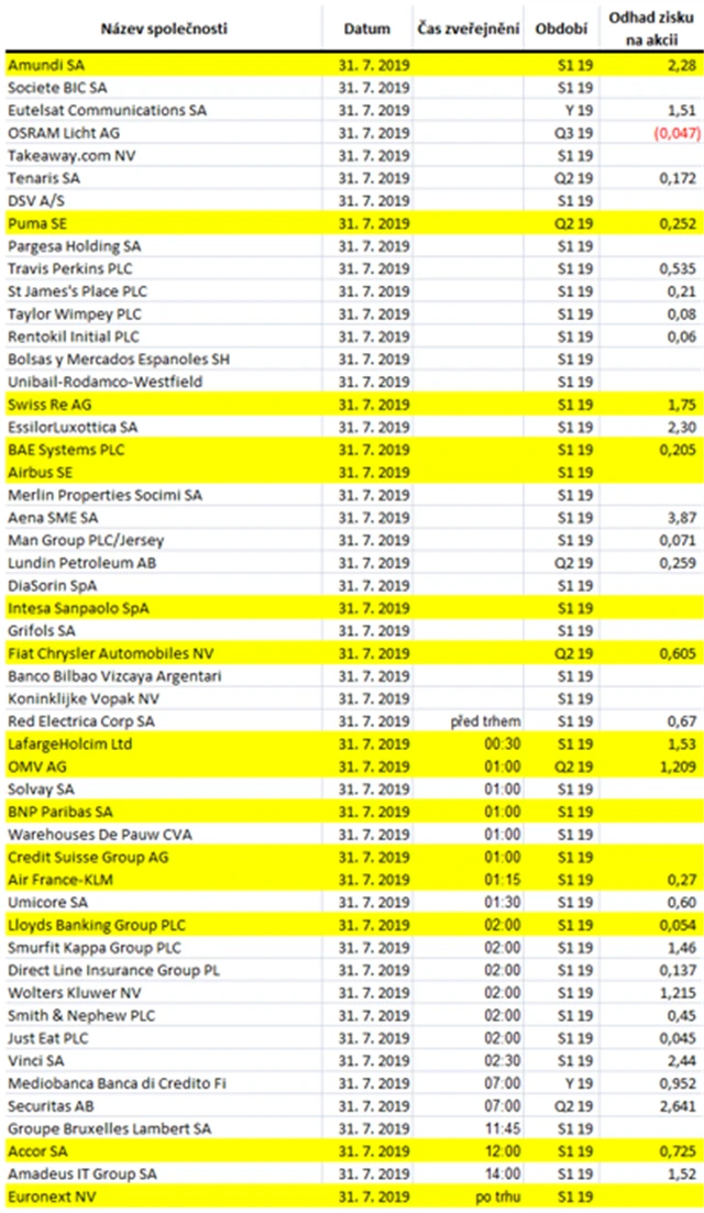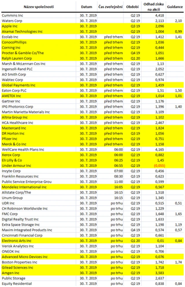 Očekávané výsledky světových firem v týdnu od 29. července (26. 7. 2019)