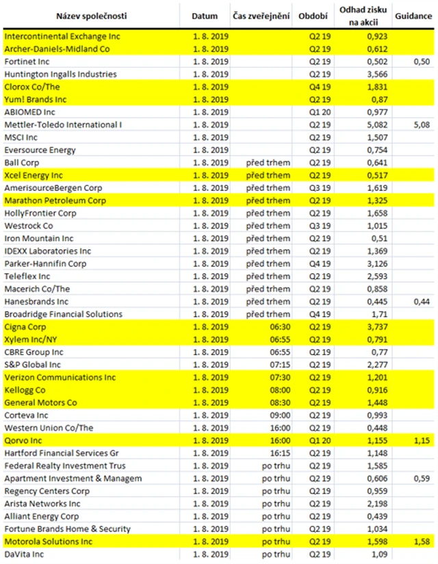 Poznámka: Odhady analytiků jsou aktuální k 25. 7. 2019.