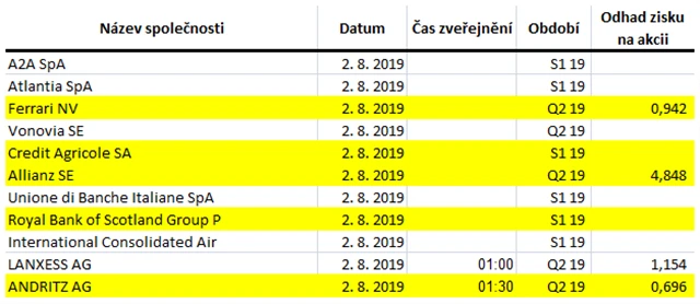 Jaká překvapení přinesly oznámené výsledky evropských firem za 2Q2019?