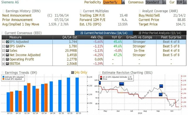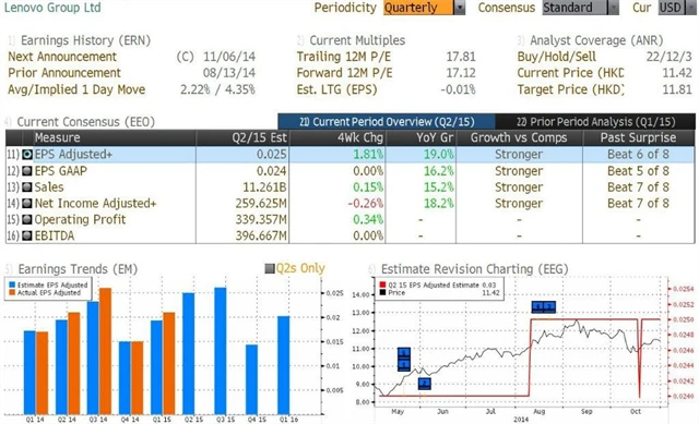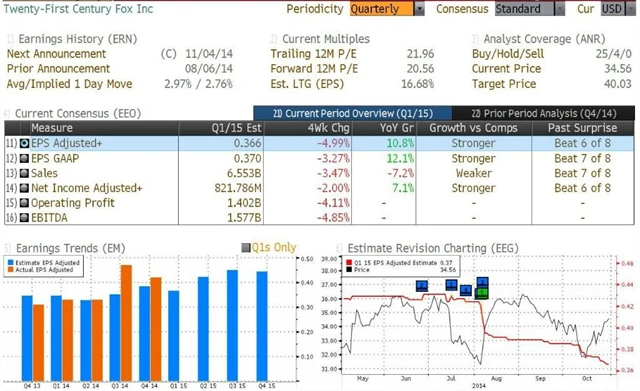 Poznámka: Odhady analytiků jsou aktuální k 31. 10. 2014