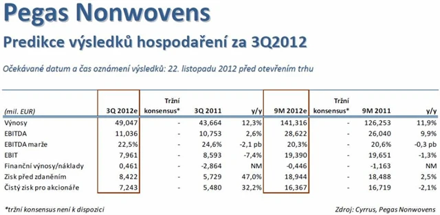 Pegas Nonwovens: Očekávané výsledky za 3Q2012