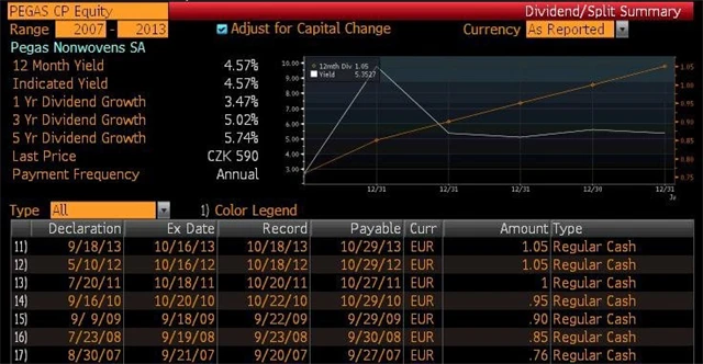 Jako dividendová akcie je Pegas stále atraktivní, alespoň pro BH Securities. "Přes snížení ročního výhledu si nemyslíme, že by mělo dojít ke ztrátě dividendové zajímavosti Pegasu," věří Hlinomaz. "Předpokládáme, že dividenda může stagnovat, možná klesnout (odhadem na 1 euro), ale bereme v úvahu dobré cash flow, jednorázovost příčin poklesu výsledků v uplynulém čtvrtletí i vůli Pegasu neměnit principy dividendové politiky, jak zaznělo v konferenčním hovoru," dodává.