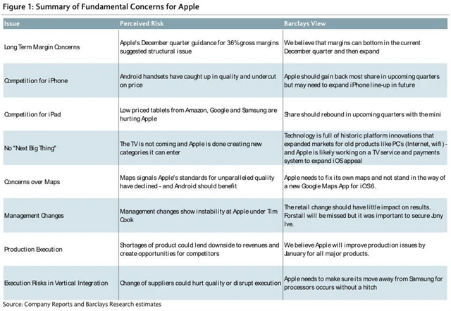 Akcie Applu za poslední tři měsíce ztratily přes 20 %. Kromě nenaplněných očekávání spojených s novými produkty firmu a její hospodaření mohou trápit další věci. Analytici z Barclays dostali výhled firmy na jednu stránku.