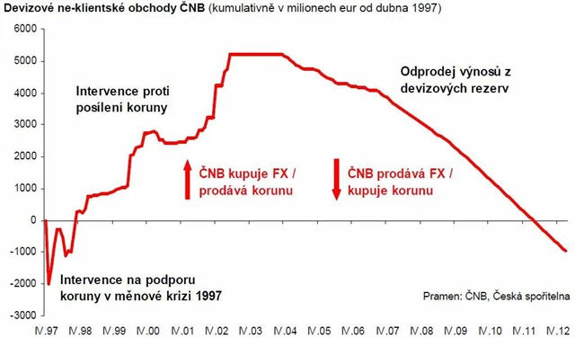 V kufříku možného náhradního střeliva jsou i devizové intervence k oslabení koruny. ČNB neintervenovala proti koruně od podzimu 2002, vynecháme-li pozdější slovní intervence, dohody s vládou o privatizačních příjmech a podobně.
