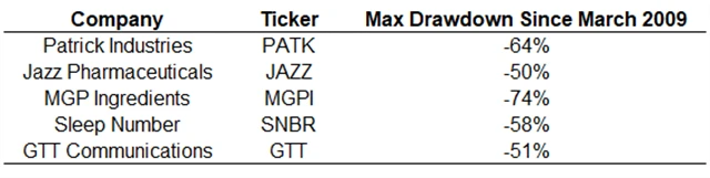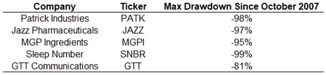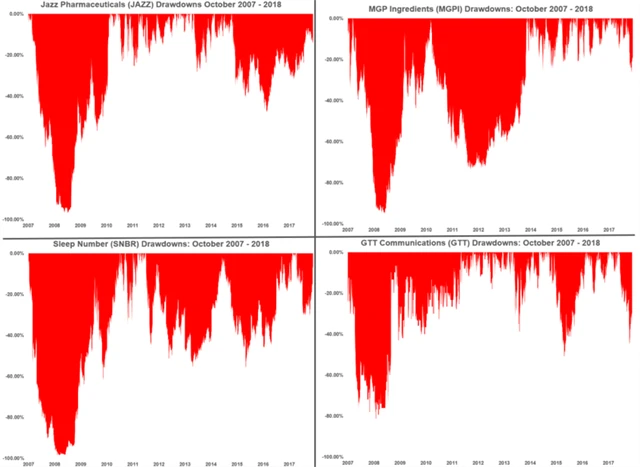 Jenže Carlson se podíval také na to, jaké propady tyto tituly za tu dobu zaznamenaly. Každá z uvedených firem od března 2009 zaznamenala poměrně výrazné propady, kterým se nevyhnula ani ta jednoznačně nejvýdělečnější.