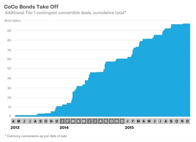 Po finanční krizi z roku 2008, kdy vlády mnoha evropských zemí musely problémové komerční banky zachraňovat před krachem za pomoci nemalého objemu peněz z kapes daňových poplatníků, padl návrh, aby na sebe ekonomická rizika finančních institucí pro příště převzali investoři. Výsledkem bylo schválení takzvaných podmíněně konvertibilních dluhopisů známých jako CoCo bondy (contingent convertible bonds). CoCo bondy neboli dluhové cenné papíry s podmíněnou konvertibilitou se začaly prodávat v roce 2013 a do konce roku 2015 dosáhl jejich emitovaný objem 97 miliard dolarů.