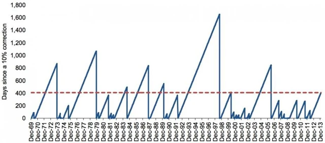 "Samotná absence korekcí neznamená automaticky pro akcie špatné zítřky. Mezi délkou býčího trhu a příštími výnosy není žádná jednoduchá souvislost," píše Andrew Lapthorne, ředitel kvantitativních strategií v Société Générale. "Na současných globalizovaných trzích je ale na pováženou, když akcie tak dlouho nekorigují růst cen. Může to vést k přehnanému riskování."