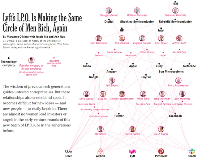 Uber, Airbnb, Lyft, Pinterest nebo Slack. To je jen několik technologických jednorožců, kteří už vstoupili nebo se chystají vstoupit na veřejný akciový trh. Kdo je s těmito firmami spojen a na jaké další společnosti mají tito lidé vazby?