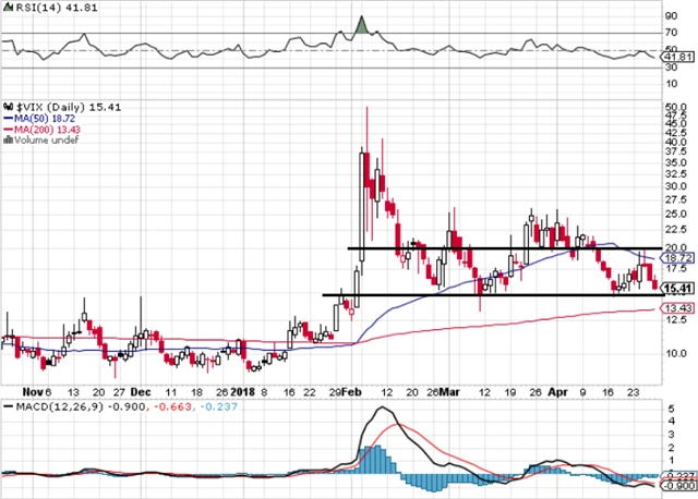 Index volatility VIX je na nízkých hodnotách a drží se v rozpětí 15–20. Pro akcie by jeho vývoj mohl být pozitivním signálem.