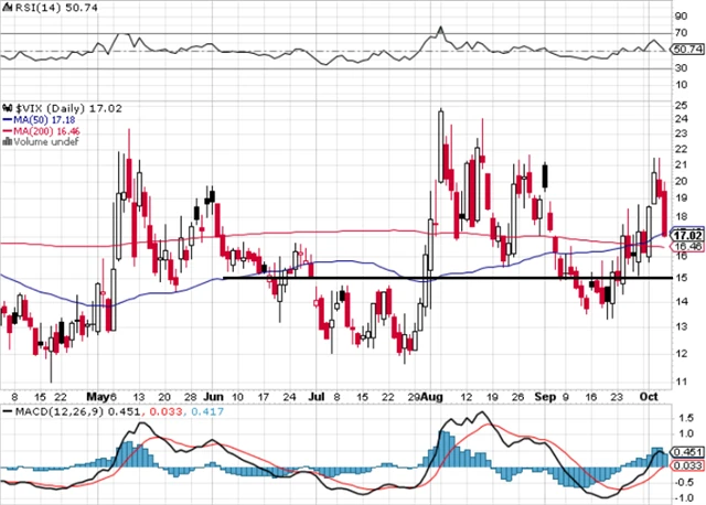 Index volatility VIX rychle vylétl výše k "tradičním" hodnotám okolo 20. Pokud příští týden potvrdí formování růstového trendu, vyšle indikátor pro akcie nepříznivý signál.