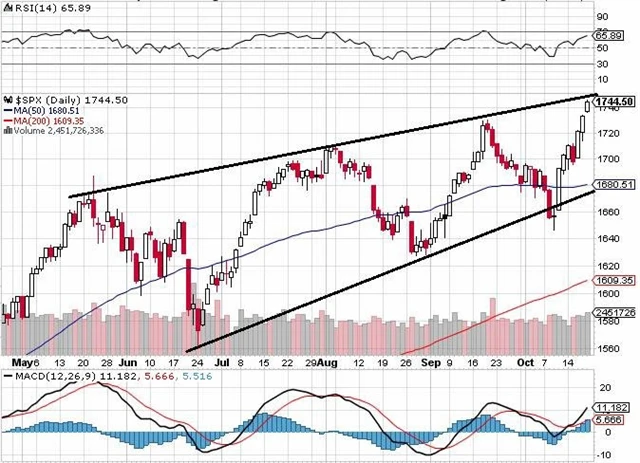 Index S&P 500 vytváří nová intradenní maxima i zavírací ceny. Indikátory jsou v býčím nastavení. Cena od obratu na 1 645 posílila během osmi obchodních dní skoro o 100 bodů a korekce by při současném vývoji byla přirozená.