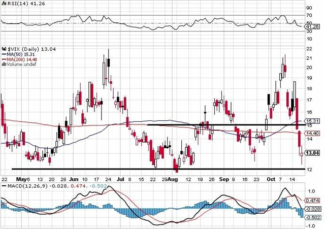 Index volatility VIX se vrátil do rozmezí 12 až 15, kde je jeho dlouhodobé rozpětí. Od středy se propadl téměř o 30 %, což je pro trhy býčí signál.