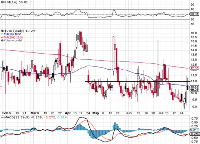 Index volatility VIX sice vzrostl z historického minima pod 9, ale drží se pod 11 a pro akcie nadále vysílá býčí signál.