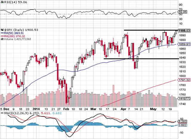 Index S&P 500 v pátek poprvé uzavřel nad 1 900. Objemy obchodů byly poslední tři dny podprůměrné. Rozpětí 1 860 až 1 900 platí. 50denní klouzavý průměr opět potvrdil svoji pověst klíčového supportu.