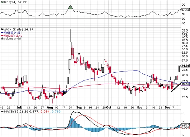 Index volatility VIX za týden přidal výrazných 64 %. Zformoval růstový trend a věrně odráží stav akciového indexu.