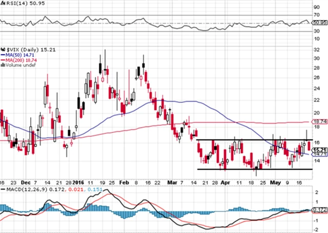 Index volatility VIX zůstává v rozpětí 13 až 16 bodů a při poklesech cen akcií nic divokého nepředvádí. Celkově tedy pro akcie spíše vysílá optimistický signál.
