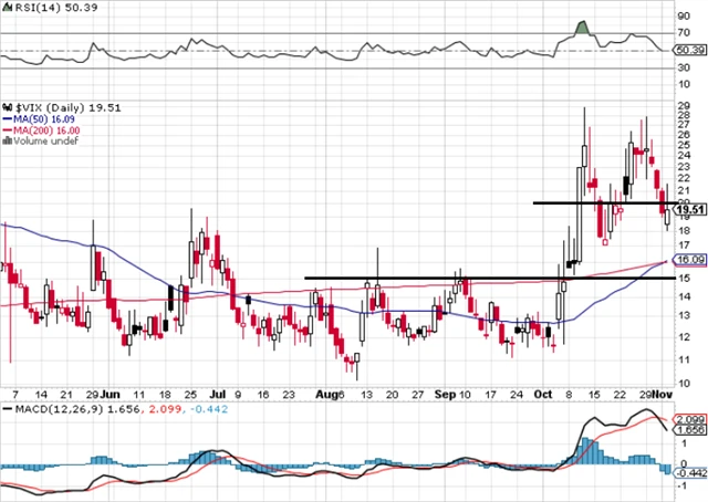 Index volatility VIX je pod 20 a na svém dlouhodobém průměru.