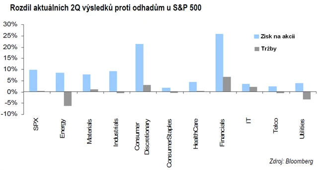Výsledková sezóna za druhé čtvrtletí v USA má za sebou polovinu a zatím ukazuje na zopakování pozitivního překvapení i výrazného meziročního růstu zisků z předchozích čtvrtletí.