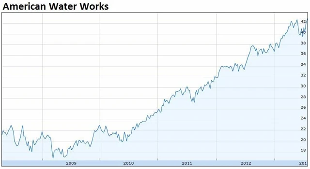 Společnost American Water Works se v oblasti distribuce a zpracování vody pohybuje déle než 120 let a své služby poskytuje přibližně 15 milionům obyvatel ve Spojených státech i v části Kanady. Společnost navíc vyplácí čtvrtletní dividendu (aktuálně 28 centů na akcii). Veřejně se obchoduje teprve od roku 2008.