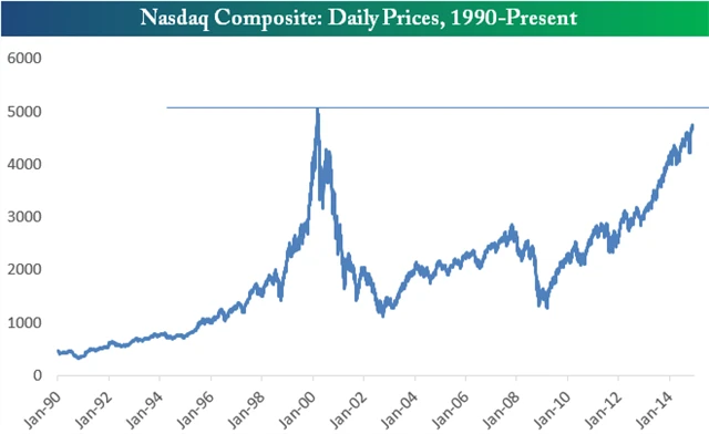 Nasdaq se pohybuje 5-6 % pod historickým závěrečným maximem z 10. března 2000 na úrovni 5 048,62 bodu.