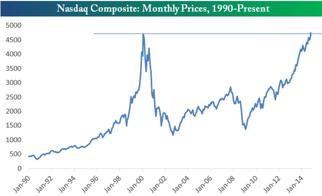 Že trh není v bublině? Nasdaq je na historickém maximu, i když zatím jen na měsíčním grafu