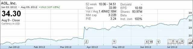 Zynga, Groupon, Facebook nebo Pandora? Zapomeňte. Yahoo! - to taky nebude úplně ono. LinkedIn, eBay a populární Apple? To už je lepší, ale o trojciferném procentním růstu si mohou letos nechat jen zdát. AOL? Ano!