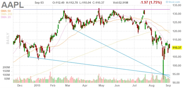 Správná nákupní cena akcie významným způsobem ovlivní výnos. Příkladem může být titul z nejpopulárnějších, tedy akcie společnosti Apple. Jde o ilustraci, ne nějaké doporučení.