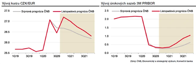 Česká národní banka v listopadu nepřekvapila tím, že ponechala úrokové sazby beze změny. Trh překvapila její nová prognóza, v které banka pro příští rok očekává až trojnásobný nárůst úrokových sazeb. Předchozí prognóza přitom počítala pouze s jedním zvýšením v posledním čtvrtletí roku 2021.