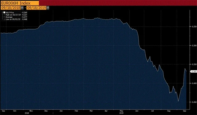 Reakce trhů na poslední velký balíček měnové stimulace ze strany Evropské centrální banky pod taktovkou Maria Draghiho je unikátem. ECB snížila depozitní sazbu na -0,50 %, ale tržní sazby EURIBOR naopak vzrostly. A drží se výše i v týdnu po rozhodnutí centrální banky.