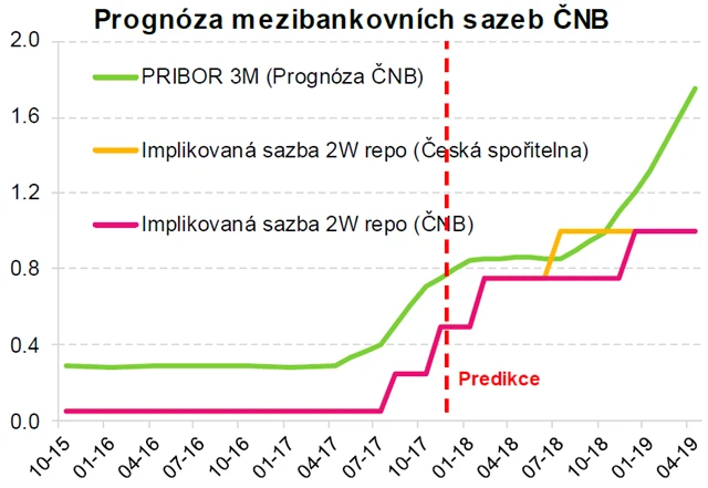 Éra kladného úrokového diferenciálu vůči eurozóně tedy ještě nějaký čas vydrží. Pro úrokový diferenciál 250 bodů ale prostor nevidíme. Možná nejsmutnější na slovech Jiřího Rusnoka je fakt, že do značné míry protiřečí prognóze samotné ČNB, která na rok 2018 předpovídá jeden, maximálně dva posuny základní sazby výše.