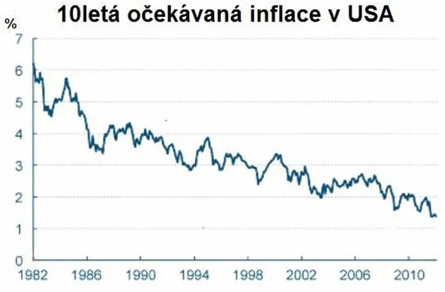 Clevelandské pracoviště amerického Fedu zpracovalo zajímavou analýzu výhledu očekávané inflace v USA pro příštích deset let. Ta by měla být jen zhruba 1,39 % ročně, což je nejnižší hodnota za posledních třicet let. Odhad inflace je v tomto případě postaven na modelu, který kombinuje informace z více zdrojů, například z vývoje cen inflačně krytých dluhopisů (TIPS) nebo z průzkumů mezi odborníky a domácnostmi.