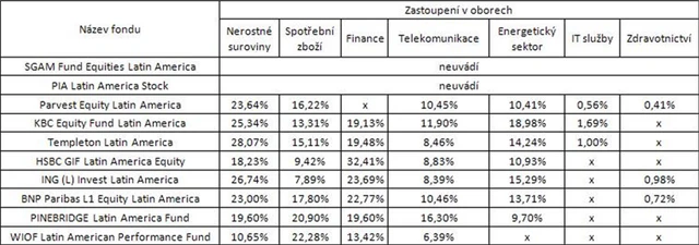 Zbylé země jako Peru, Kolumbie, Ekvádor a Paraguay tvoří buď pouhý zlomek portfolií, nebo v nich dokonce nejsou zastoupeny vůbec. Pokud se tedy geografického rozložení investic týče, je to o míře tolerance vůči Brazílii, samozřejmě i v rámci Jižní Ameriky platí pravidlo diverzifikace.