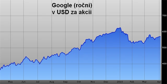 Cena akcií začala znovu neohroženě růst, jakmile investoři pochopili, že se zisky poměrně rychle "otřepaly" z krize. Objem textové reklamy, tedy základu googlovského byznysu, se utěšeně zvyšuje.