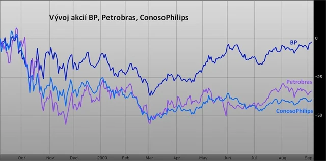Vývoj cen BP musíme dát také do souvislosti s reakcí ceny ropy na poslední americké makrozprávy. Například v minulém týdnu zveřejněný index ISM nákupních manažerů vzrostl poprvé za 18 měsíců, cena ropy pro příští měsíc se přesto na burze NYMEX propadla k 67 USD za barel.