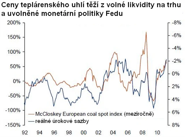 Nízké nebo záporné reálné úrokové míry po celém světě podporují spotřebu uhlí. Silný vliv reálných sazeb na ceny uhlí za poslední rok tak podtrhuje důležitou zpětnou vazbu mezi měnovou politikou a vývojem cen uhlí. Další kauzalitu hledejte na forexu: