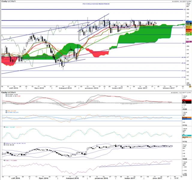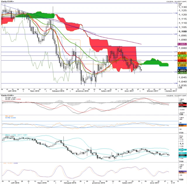 Technická analýza měnového páru EUR/USD a cen ropy Brent a zlata. (3. 3. 2017)