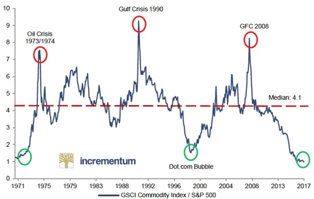 Uvedený nepoměr vede k tomu, že jsou komodity jako celek ve srovnání s akciemi nejlevnější od začátku 70. let. Někteří investoři zvažují, zda již není čas komodity nakupovat. Je ale otázka, zda jsou komodity levné, nebo jen akcie příliš drahé.