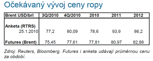 Cena ropy Brent se po růstu až k 88 USD/brl prudce na krátkou dobu propadla pod 70 USD/brl a poté se vrátila nad 70 USD/brl, nyní kolísá mezi 70 a 80 USD/brl. Důvodů propadu bylo několik, z toho dva jsou hlavní: tržní turbulence související se státním zadlužením v EU (Řecko) a snaha Číny zpomalit přehřívající se ekonomiku.