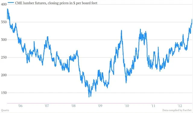 Kromě toho, že ceny komodit obecně v uplynulých letech hnaly nahoru podpůrné akce centrálních bank, které zaplavily trh novými penězi, se v rostoucí ceně dřeva odráží oživení na americkém nemovitostním trhu - nejen v USA totiž dřevo patří k základním stavebním materiálům.