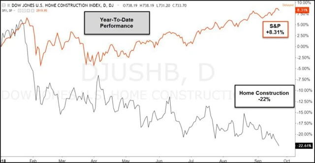 Výrazně za zbytkem trhu zaostává také akciový index sledující firmy ze sektoru rezidenční výstavby. Pro americkou ekonomiku oba grafy tedy nevěstí zrovna růžové zítřky, jde ale samozřejmě pouze o dva dílčí indikátory.