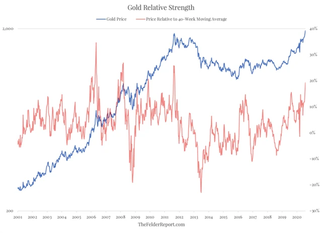 "Sledujeme zlatý ohňostroj, který jsem vyhlížel již před pár lety. Mám ale na paměti slova Warrena Buffetta o tom, že to, co prozíraví dělají na začátku, dělají hlupáci na konci," říká Jesse Felder. "Netvrdím, že je býčí trend na trhu s drahými kovy u konce, to v žádném případě, ale myslím si, že strach, který ze zlata a akcií jeho těžařů v posledních letech dělal skvělou příležitost, byl zahnán letošním růstem ceny kovu."