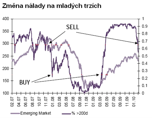 Dvě postupná zvýšení povinných rezerv čínských bank a zvýšení diskontní sazby ze strany amerického Fedu – dva hlavní důvody, proč se nálada mezi investory posouvá od absolutní důvěry v pomocnou ruku státu. A sentiment se skutečně změnil (viz graf Změna nálady na mladých trzích).