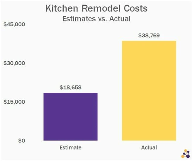 Jeden průzkum z roku 2002 cílil na majitele domů a na jejich odhad nákladů na rekonstrukci kuchyně před začátkem projektu a na skutečné náklady. Výsledky jsou jasné z grafu. Lidé mají tendenci výrazně podceňovat náklady a přeceňovat výhody. Pravděpodobně každý s tím má zkušenosti, například při plánování cesty nebo dovolené, i když zkušenosti z minulosti většinou nabádají ke střídmosti.