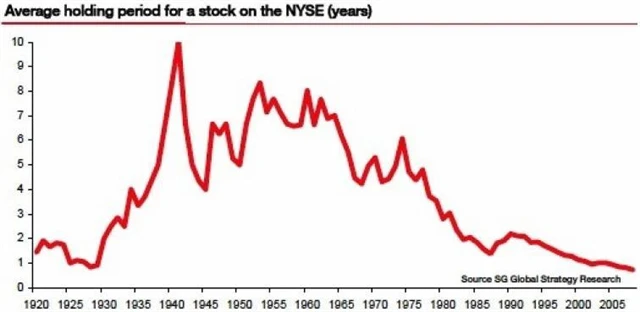 Pět let akcie investoři v průměru drželi naposledy v 70. letech. Od té doby průměrná doba držení rychle klesá. Nejsou to ani tři roky, dokonce ani jeden. Jak je to možné? Jsou lidé méně trpěliví? Nebo se změnil styl investování?