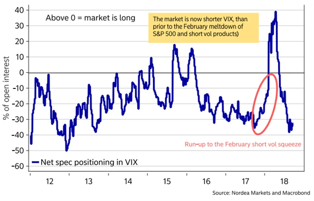 Investoři si nedají říci a opět budují krátké pozice na trhu s volatilitou (sázejí na pokles VIX). Aktuálně jsou dokonce investoři více SHORT než v únoru, tedy před posledním rychlým sešupem na americkém akciovém trhu. To znamená, že trh nečeká velké turbulence. Pozitivní očekávání v byznysu a slabší očekávaná inflace nahrávají očekávání poklidného vývoje, to ale neznamená, že by investoři měli být klidní. Spíše naopak, situace se může v roce 2019 rychle změnit.