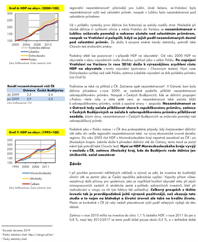 - Napojení na dálniční síť výrazně pomáhá chudším regionům v přibližování se k průměrné ekonomické úrovni země. Důkazem jsou české Ostravsko a polské Dolnoslezsko.